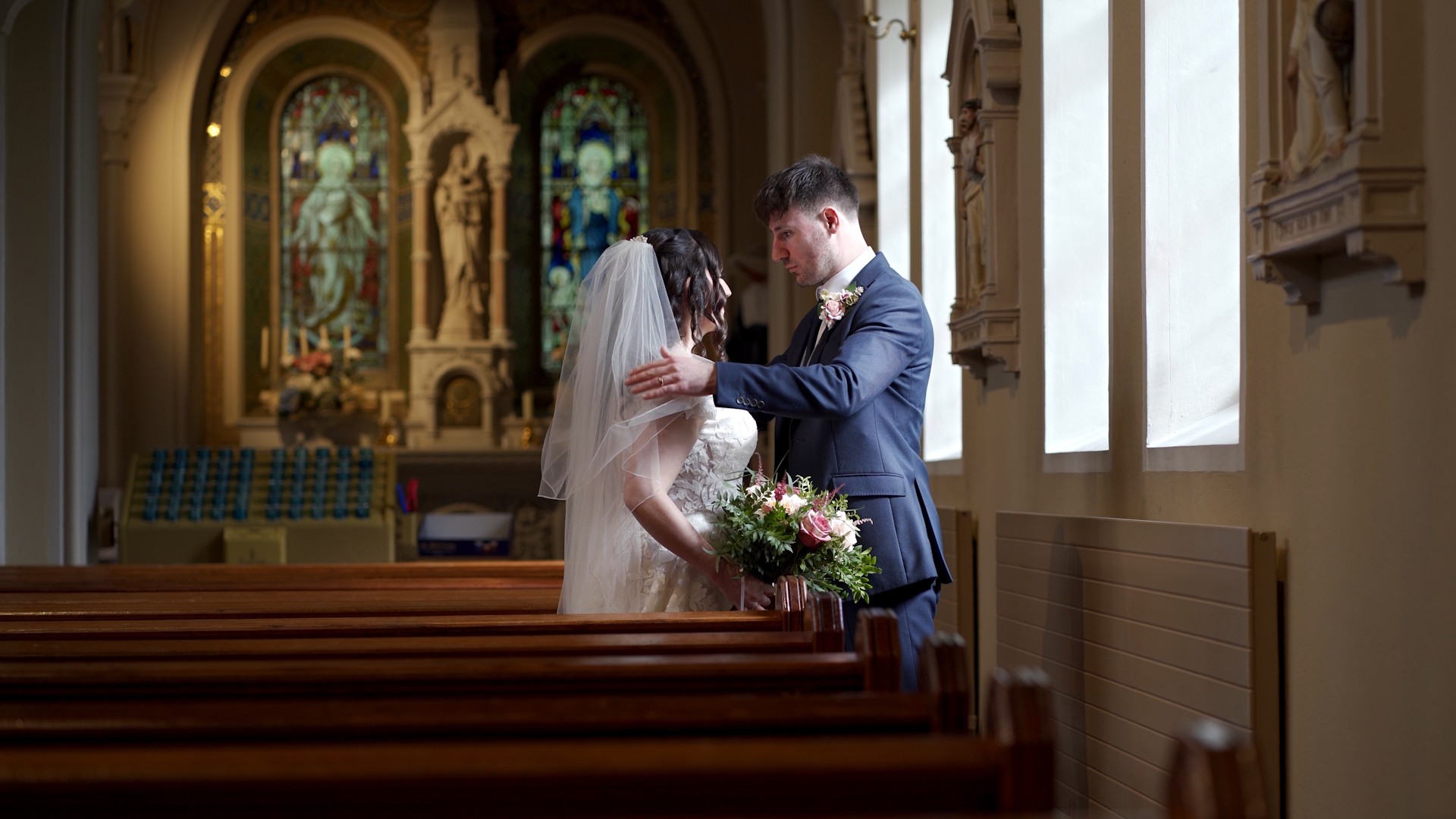 So, for this wedding film I was off to Newry and the incredible scenery of the Mourne mountains. After their vows at the beautiful Church of the Sacred Heart (check out those mosaics!), newlyweds Malachy & Tara McAteer headed to the Rocky Mountain Cottage for their reception and concluded the evening with one heck of a surprise firework display!