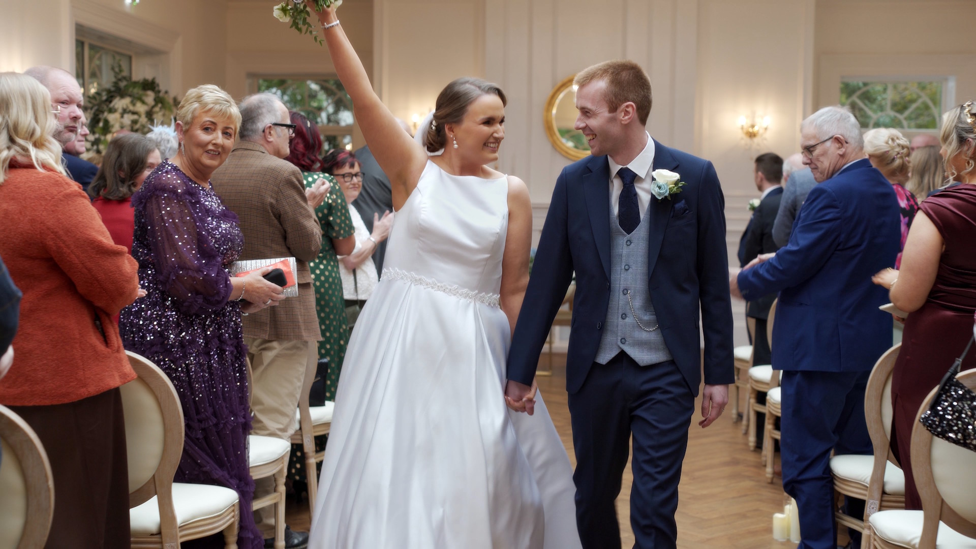 It’s autumn and you know what that means – golden leaves time! Tracey & Andrew’s wedding ceremony was conducted in Leighinmohr House’s beautiful new Garden Room and, while the autumn weather wasn’t exactly inclined to play ball, our couple cracked open the umbrellas and had a fun stroll down to the river bank nonetheless! The golden leaves were literally falling from the old oak as the rain pattered around it; the atmosphere was fantastic.